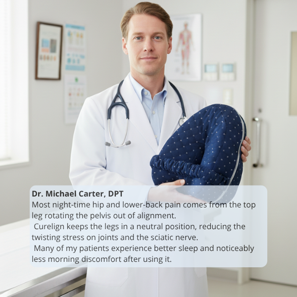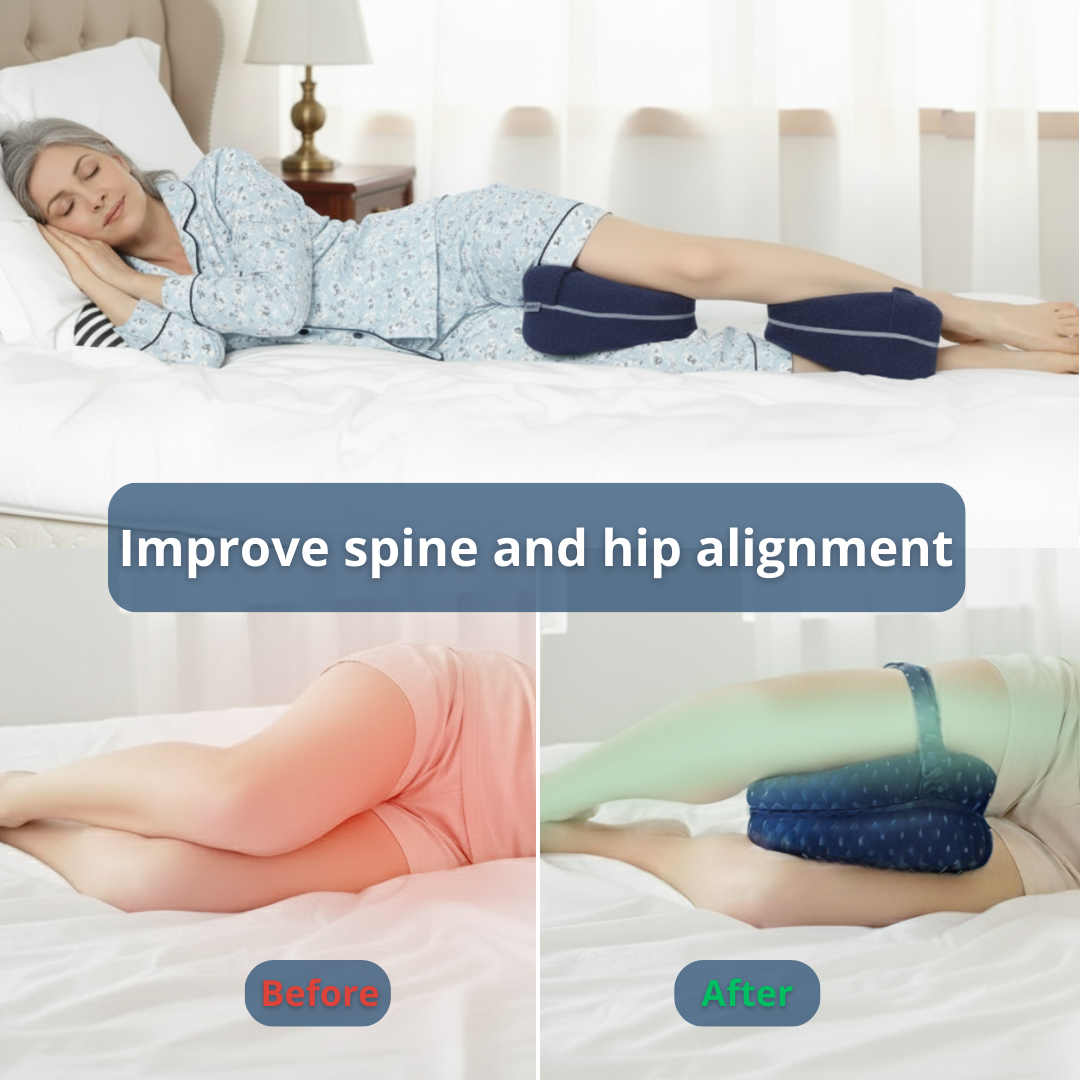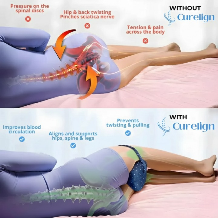 Yes. Curelign keeps your knees at the right height and distance to prevent your pelvis and lower back from twisting during sleep — the main cause of night-time hip and sciatic discomfort.
